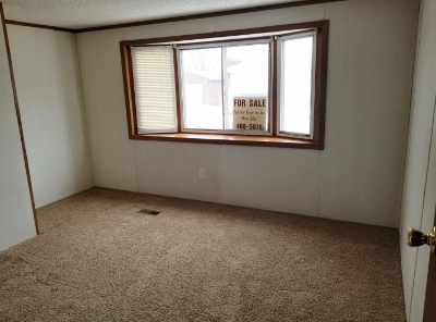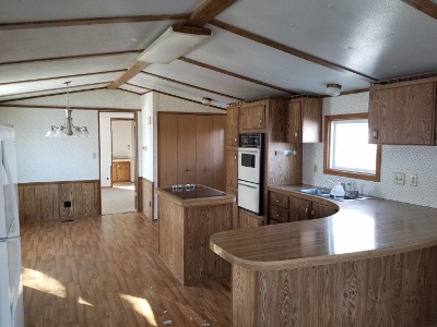 | The first inside view of this 16' wide home is a stunner! Open Kitchen Living room with a snack bar. Home boasts vaulted ceilings and fresh paint. Double oven, and island with flat cook top, combined with lots of oak cabinets steal the show. Convenient laundry right off kitchen. Master bedroom suite with large private bath and his and hers closets. New Carpet through out and some new vinyl. Energy efficient thermo pane windows, lots of built ins, cabinets and closets and brand new skirting make this home very appealing! |